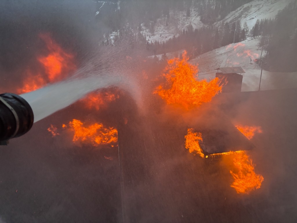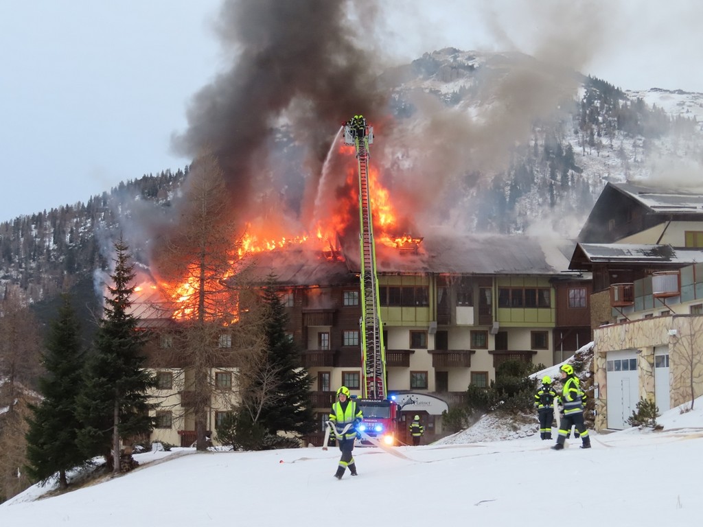 Die ersten Feuerwehren wurden um 06:45 Uhr alarmiert, nachdem ein Mitarbeiter der Bergbahnen den Brand entdeckt hatte. In weiterer Folge wurden unter der Einsatzleitung der örtlich zuständigen FF Tröpolach zahlreiche Feuerwehrkräfte aus den Bezirken Hermagor, Spittal an der Drau, Villach-Land und Villach-Stadt nachalarmiert, sodass am Nachmittag bereits 24 Feuerwehren mit rund 240 Einsatzkräften, darunter 60 Atemschutzgeräteträger, im Einsatz standen. Zwei Drehleitern und eine Teleskopmastbühne wurden in Position gebracht. Ein Rettungswagen des Roten Kreuz stand vor Ort in Bereitschaft. Die Besitzerfamilie wurde von einem Kriseninterventionsteam betreut. Brandermittler der Polizei haben noch während der Löscharbeiten mit den Ermittlungen zur Brandursache begonnen.