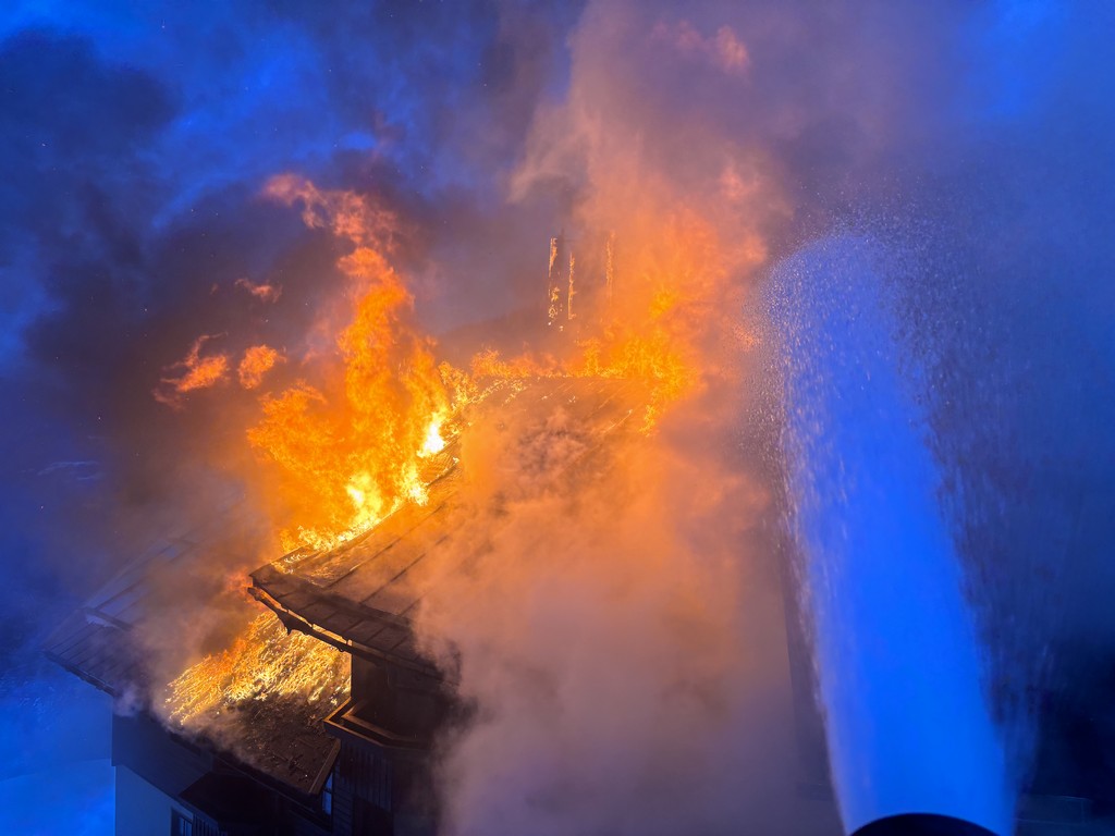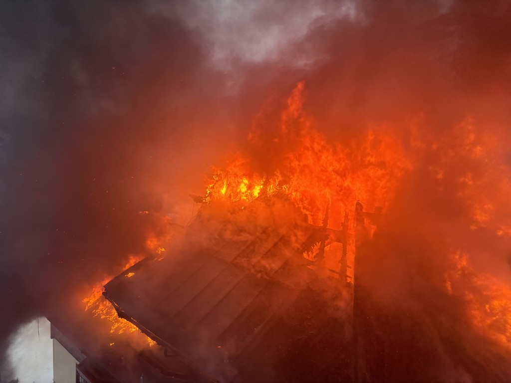 Mit Hilfe eines Kranfahrzeuges konnte in den Mittagsstunden das Dach so weit geöffnet werden, um darunter liegende Glutnester löschen zu können. Um 15:00 Uhr konnte der Großteil der Feuerwehren wieder vom Brandort abrücken. Eine Brandwache verblieb in mehreren Schichten noch über Nacht vor Ort. Bis in die Morgenstunden mussten dabei immer wieder im Dachstuhl aufflackernde Flammen gelöscht werden. Am Vormittag des 26.11.2023 konnte schließlich „Brand aus“ gegeben werden.