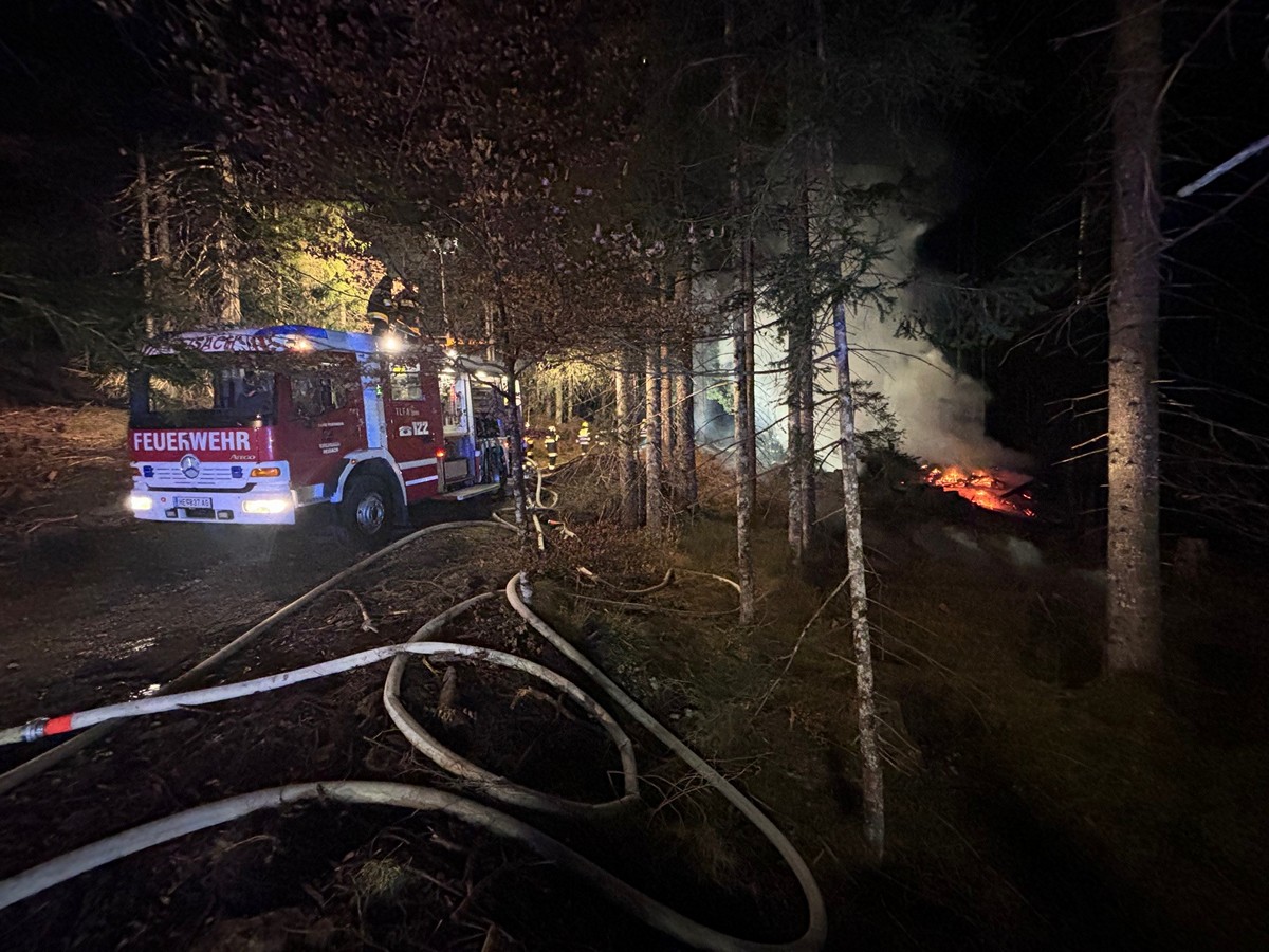 Am 28. November gegen 19:40 Uhr kam es aus bisher unbekannter Ursache bei einer Jagdhütte nordöstlich des Reißkofelbades, Gemeinde Kirchbach, zu einem Brand.