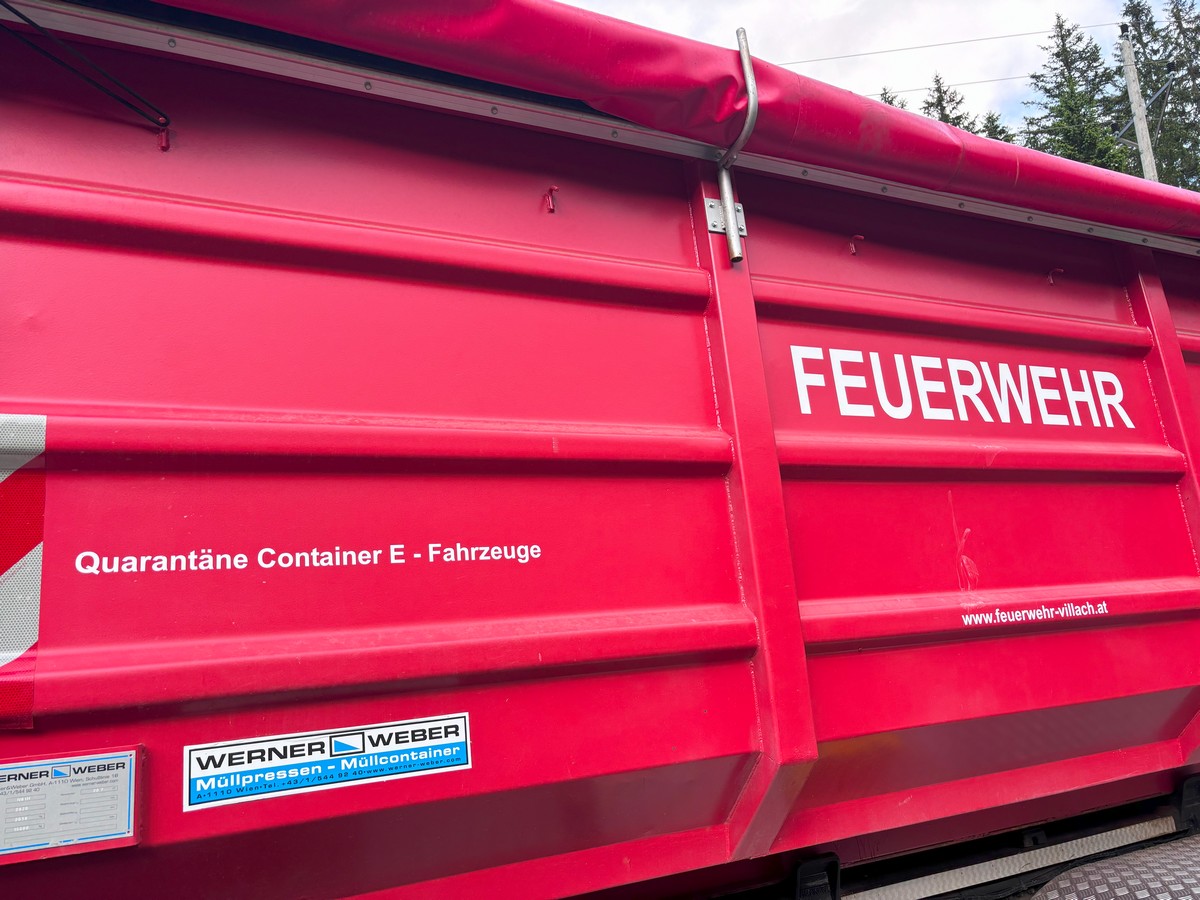 Nach den Löscharbeiten wurde die Hauptfeuerwache Villach mit ihrem Quarantäne-Container für E-Fahrzeuge angefordert, um das Fahrzeug sicher zu entfernen. Das Fahrzeug wurde mit dem LKW 2 der HFW nach Villach verbracht.