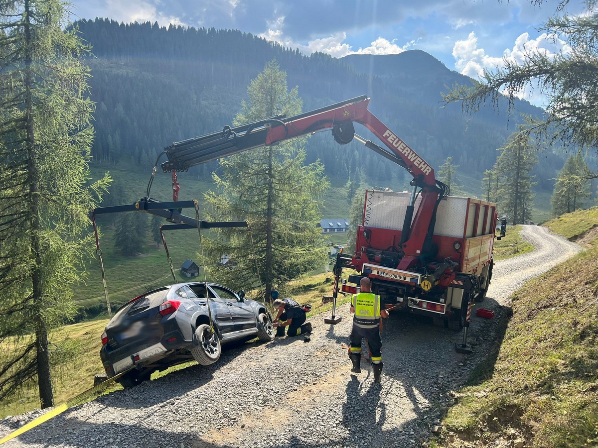 Fahrzeugbergung Dellacher Alm Zu einer Fahrzeugbergung wurde die FF Hermagor am 30. August auf die Dellacher Alm alarmiert. Mit dem SRF-K konnte das Fahrzeug ohne Beschädigung wieder auf die Straße gehoben werden.