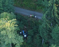 Der in dem Wald abgestürzte Traktor wurde von einem Radfahrer entdeckt, welcher daraufhin die weitere Rettungskette in Gang setzte. Beim Eintreffen der Rettungs- und Feuerwehrkräfte wurde der unbestimmten Grades verletzte Lenker in der Fahrerkabine bereits von Polizeibeamten betreut.