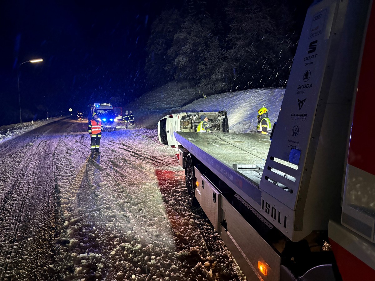 Relativ ruhig verlief der Schneefall am 19. Feber für die Freiwillige Feuerwehr Hermagor. Während einer internen Schulung wurden wir jedoch gemeinsam mit der Feuerwehr Mitschig zu einer Fahrzeugbergung nach Podlanig alarmiert.