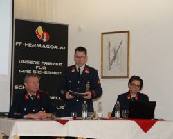 Im Rahmen der Jahreshauptversammlung wurden Andreas Göttling zum Oberlöschmeister, Lukas Jank zum Hauptfeuerwehrmann, Christian Lackner zum Oberfeuerwehrmann, und Burgstaller Fabio, Florian Cutura, Niklas Fischer zum Feuerwehrmann befördert. Es konnte ein Neueintritt, Kalman Patrik, und eine Überstellung von der Feuerwehrjugend in den aktiven Stand, Simon Wlk, bekannt gegeben werden. Derzeit zählt die Feuerwehr Hermagor 76 Mitglieder.