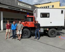 Nicht schlecht staunten die Kameraden als am 31. Mai plötzlich unser alter Unimog mit Bayrischem Kennzeichen und einen Wohnwagenaufbau vor dem Feuerwehrhaus in Hermagor stand.