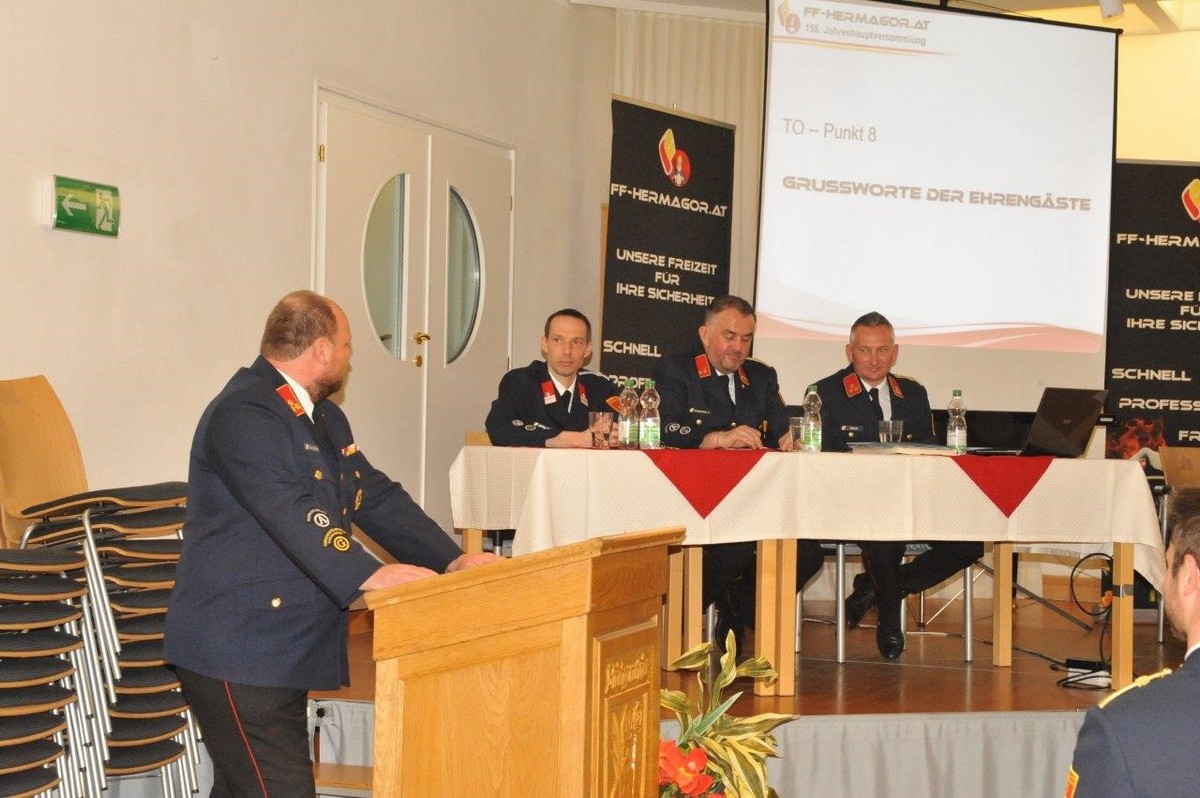 Als Ehrengäste konnten BFK Herbert Zimmermann, AFK Robert Koppensteiner, GFK Bernhard Tscheließnig, GFK-Stv. Florian Zimmermann, Bgm. DI Leopold Astner, Vzbgm. Irmgard Hartlieb, StR. DI Siegfried Pirker, StR. Hannes Burgstaller, Stadtamtsleiter Bernhard Resch, Bezirkshauptmann-Stv. Mag. Günther Fian, Bezirkspolizeikommandant Obstlt. Markus Tilli, Polizeipostenkommandant Chefinsp. Hannes Pock, Bezirksrettungskommandant-Stv. Rettungsrat Joachim Hubmann und Thomas Steinwender vom Roten Kreuz Hermagor, Einsatzstellenleiter der Österr. Wasserrettung Hermagor Andreas Göttling, Ehrenabschnittsbrandinspektor Erich Hofer und Ehrenbezirksfeuerwehrarzt Dr. Werner Edthofer begrüßt werden. Dies unterstreicht die Wertschätzung und Unterstützung, die die Freiwillige Feuerwehr Hermagor in der Gemeinschaft erfährt.