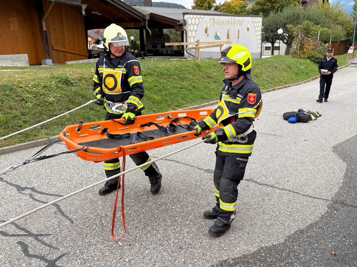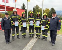 Ein Trupp des Bezirkes Hermagor – bestehend aus vier Mitgliedern der Freiwilligen Feuerwehr Hermagor (Stefan Baumgartner, Heinz Wernitznigg, Patrick Pettauer und Irmgard Hofer-Zimmermann) sowie einem Mitglied der Freiwilligen Feuerwehr Kötschach-Mauthen (Heimo Pflügl) – nahm sich dieser Herausforderung an und absolvierte die Prüfung mit Bravour.