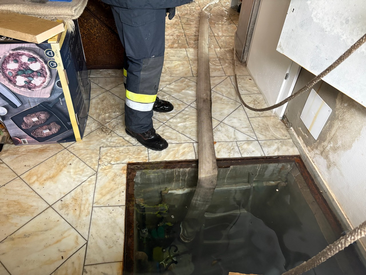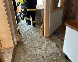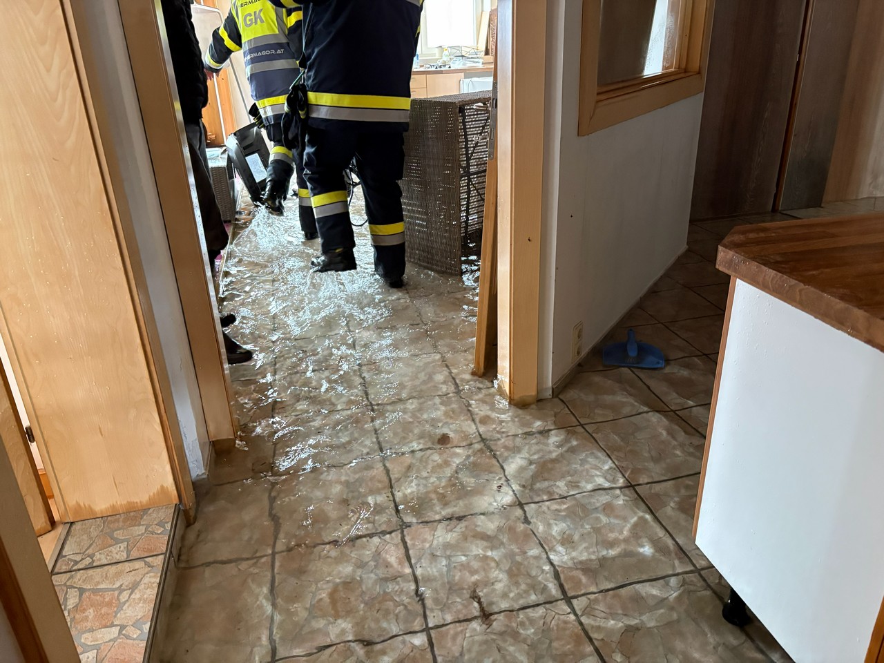 In einem derzeit leerstehenden Objekt war eine Wasserleitung im 1. Stock geplatzt, wodurch sich im Erdgeschoss eine beträchtliche Menge Wasser ansammelte.